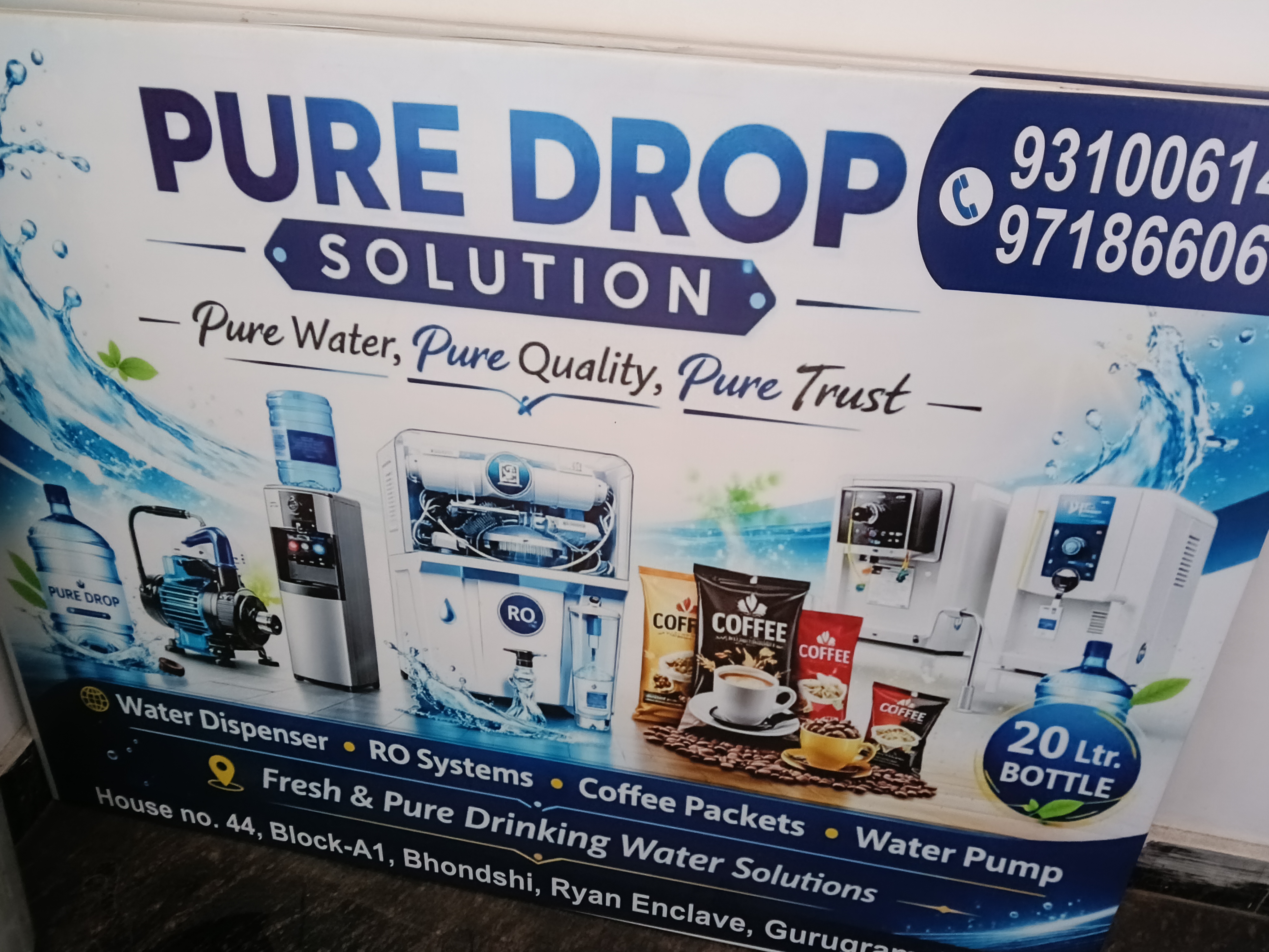 At PURE DROP SOLUTION , we are committed to delivering excellence through our services and solutions. Based in Gurgaon,Bhondsi , we cater to the diverse needs of our clients with a focus on quality, innovation, and integrity. Our team strives to build meaningful relationships and provide value-driven experiences that drive success and growth. Whether you're seeking support, partnership, or service, we’re here to help. Feel free to contact us at puredropsolution00@gmail.com or call us at 9310061459 — we’re always ready to assist you.